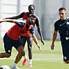 Dayanıklılık ve pas çalışması ile devam eden antrenman, çift kale maçla sona erdi.