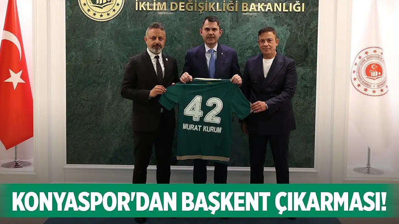 Konyaspor'dan önemli ziyaret. Anadolu Kartalı'nda Başkan Ömer Korkmaz ve Başkan Vekili Önder Çınar, Çevre- Şehircilik ve İklim Değişikliği Bakanı Murat Kurum'u makamında ziyaret etti. Gündemin konuşulduğu toplantı sonrasında Bakan Kurum'a 42 numaralı Konyaspor forması takdim edildi. Kulübün resmi sitesinden yapılacak açıklamada Bakan Murat Kurum'a başarılar mesajı paylaşıldı.