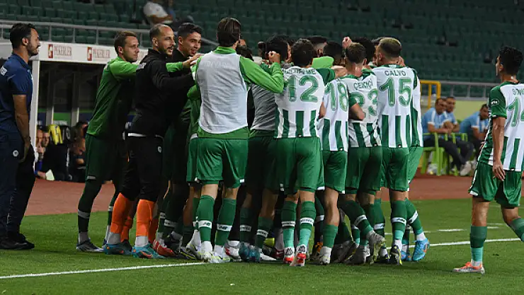 MEDAŞ Konya Büyükşehir Belediye Stadyumu’nda oynanan karşılaşmayı Zymer Bytyqi (40), Konrad Michalak (58) ve Robert Muric’in (90+5) golleriyle 3-0 kazanan yeşil-beyazlılar, tur kapısını araladı. 28 Temmuz Perşembe günü saat 21.00’da ki karşılaşmadan beraberlikle veya 2 farklı skorla mağlup ayrılsa bile tur atlayan taraf olacak.