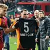 Türk futbolunun beyefendi ismi Ahmet Çalık Konyaspor Stadyumu’nda tekrar anıldı. Yeşil beyazlıların rakibi Galatasaray tribünlere maç öncesi Konyasporlu taraftarların Ahmet Çalık tezahüratlarına eşlik etti. Galatasaray’ın başarılı kanat oyuncusu Kerem Aktürkoğlu, takım arkadaşı Rashica’nın 31. Dakika attığı gol sonrası yanlarında getirdikleri Ahmet Çalık formasına sarıldı. Sarı kırmızılıların Teknik Direktörü Okan Buruk’ta bir süre Çalık’ın formasını elinde tutarken Konyaspor taraftarları alkışladı.