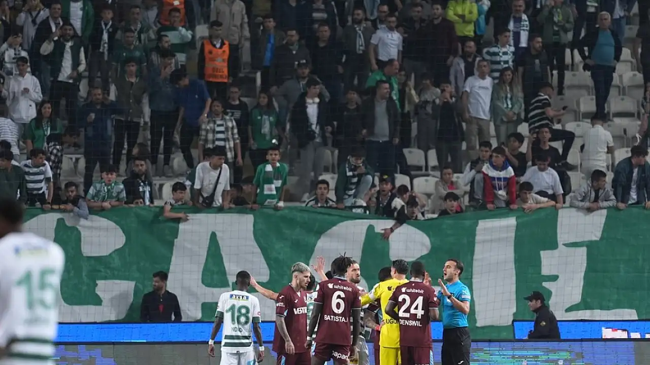 "TÜMOSAN KONYASPOR Kulübü’nün 03.04.2024 tarihinde oynanan TÜMOSAN KONYASPOR-TRABZONSPOR A.Ş. Trendyol Süper Lig müsabakasındaki “çirkin ve kötü tezahüratı” nedeniyle Futbol Disiplin Talimatı’nın 53. maddesi uyarınca, “saha olayları” nedeniyle Futbol Disiplin Talimatı’nın 52. maddesi uyarınca ve “talimatlara aykırı hareketi” nedeniyle Futbol Disiplin Talimatı’nın 46. maddesi ve Süper Lig ve TFF 1. Lig Yayın Talimatı’nın 7/8 maddesi uyarınca PFDK'ya sevkine karar verilmiştir."