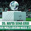 Konyaspor’un bay geçtiği 35. Hafta önceki gün oynanan müsabakalar ile sona erdi. Ligde ilk 6 hedefini kovalamaya devam eden Konyaspor’da rakiplerinden Başakşehir, Antalyaspor ile golsüz berabere kaldı. Kayserispor evinde Alanyaspor karşısında 4-0 ile dağıldı. Trabzonspor ise sahasında gol oldu, Karagümrük’e karşı yağdı 4-1. Bu skorlarla yeşil beyazlılar puan tablosunda haftayı 7. Sırada kapattı.