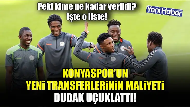 Oyuncuların alacakları maaş ve menajerlik ücretleri de bu maliyete dahil olacak olursa Patrick Eze ve Petar Filipovic dışındaki isimlerin kulübe maliyeti yaklaşık 1'er milyon Euro civarında görülüyor. Eze’nin maliyetinin yaklaşık 1,5 Milyon Euro, Petar Filipovic’in ise 2 milyon dolaylarında olduğu tahmin ediliyor. Konyaspor’un bu seneki transfer harcamalarında TL bazında yaklaşık 60 milyon lira harcadığı göze çarpıyor.