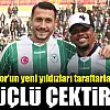 Transfer sezonunun sürpriz takımı Atiker Konyaspor'un yeni yıldızları Samuel Eto'o ve Adis Jahovic, kendilerini yeşil beyazlılara bağlayan resmi sözleşmeyi imzaladı. İmza sonrası yaklaşık 3 bin taraftarın karşısına çıkan golcü oyuncular onları selamlayarak üçlü çektirdi.