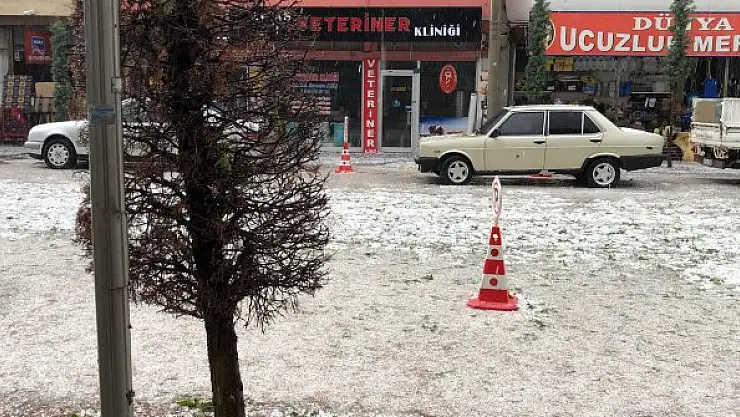 Sağanağın aralıklarla devam ettiği ilçede, öğleden sonra dolu etkili oldu.