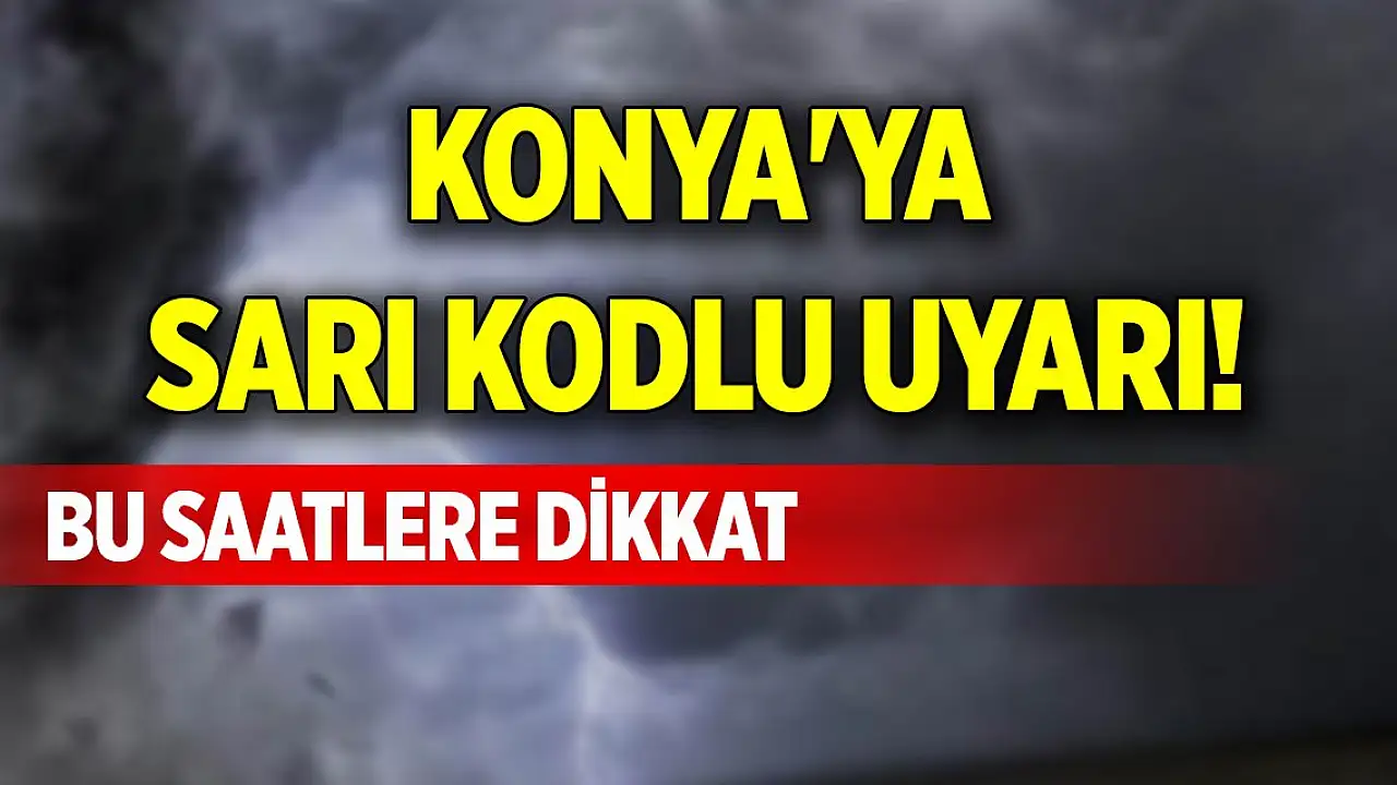 Meteorolojiden Konya'ya sarı kodlu uyarı verildi. Bugün kuvvetli gök gürültülü sağanak yağışlardan kaynaklı ani sel, su baskını, yıldırım, ulaşımda aksamalar, yerel dolu yağışı ve kuvvetli rüzgar gibi olumsuz durumlara karşı vatandaşlar uyarıldı.