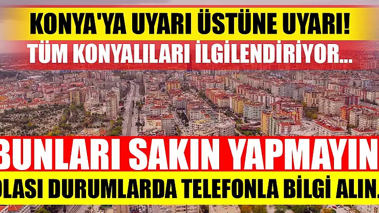- Konya'ya uyarı üstüne uyarı! Tüm Konyalıları ilgilendiriyor... Bunları sakın yapmayın! Olası durumlarda telefonla bilgi alın...
