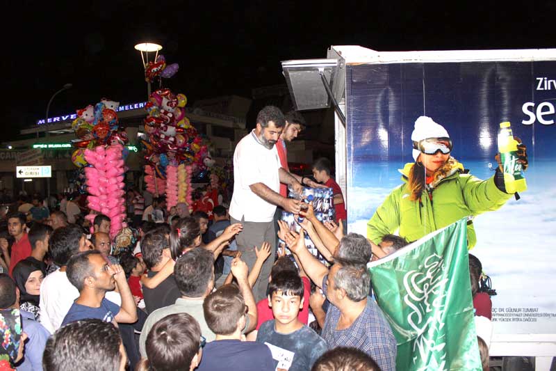 Yiyecek ve içecek ikramında bulunan firmalar Konyalıların Mevlana Meydanı’ndaki nöbetine destek oldu.