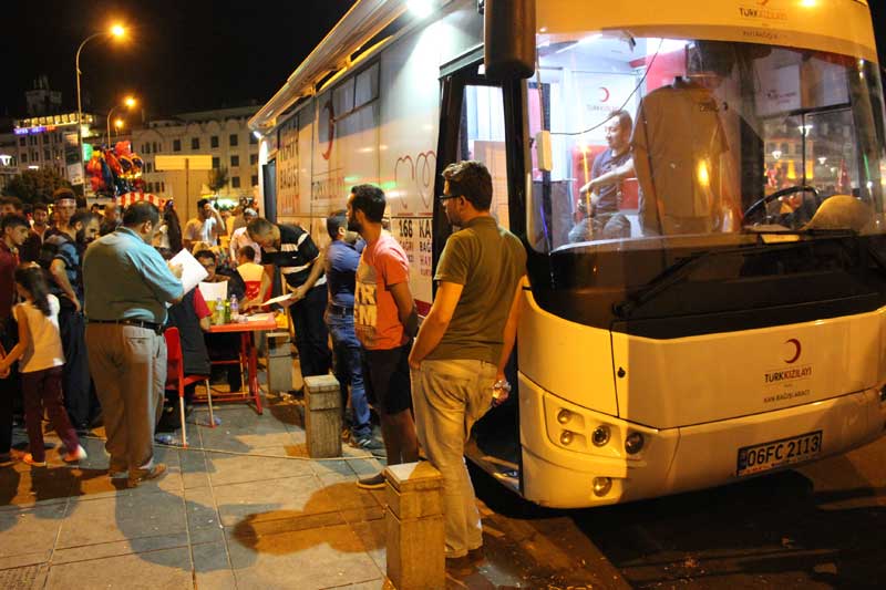 Konyalılar, Mevlana Meydanı’nda bulunan Kızılay’ın kan toplama aracının önünde bağışta bulunmak için kuyruklar oluşturdu.