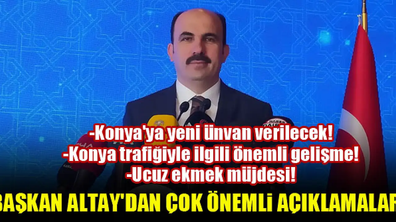 - Konya'ya yeni ünvan verilecek... Konya trafiğiyle ilgili önemli gelişme... Ucuz ekmek müjdesi! Başkan Altay'dan çok önemli açıklamalar!