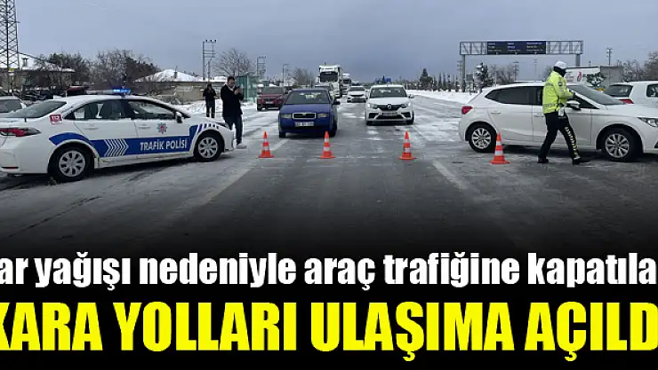 Kar yağışı ve buzlanma nedeniyle araç trafiğine kapatılan Konya'yı Antalya'ya, Karaman'a, Afyonkarahisar'a ve Isparta'ya bağlayan kara yolları ulaşıma açıldı.