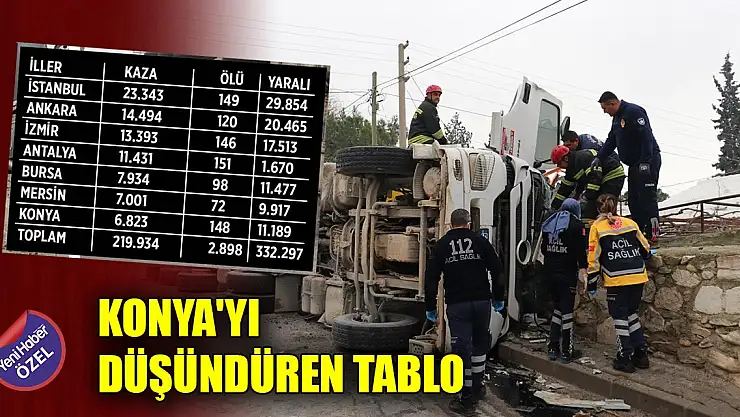 Emniyet Genel Müdürlüğü ve Jandarma Gelen Komutanlığından alınan bilgilere göre 2022 yılında 219 bin 934 ölümlü veya yaralanmayla sonuçlanan trafik kazası meydana geldi. Bu kazalarda 2 bin 898 ölürken 332 bin 297 kişi yaralandı. Konya'da ise meydana gelen 6 bin 823 kazada 148 kişi hayatını kaybederken, 11 bin 189 kişi ise yaralandı.