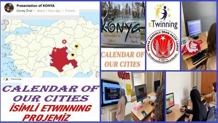 'Calendar of our cities isimli' şehirlerin tanıtıldığı eTwinning projesinde Konya, Bursa, Tarsus ve Fransa’nın Versailles/Montigny şehirlerinden öğrenciler ve öğretmenler bir araya gelerek kültürlerini ve yaşadıkları yerleri tanıttı. Projede, farklı şehirler ve ülkelerle ilgili farkındalık yapmak, bu sayede İngilizceyi sevdirmek ve etkili kullanımına katkı sağlamak hedeflendi. Konya Anadolu İmam Hatip Lisesi Fen ve Sosyal Bilimler Proje Okulu öğrencileri projeyi İngilizce Öğretmeni Güneş Önal danışmanlığında yürüttü. Öğrenciler için güvenli internet kullanımı ve internet etiği üzerine bilgilendirmeler yapıldıktan sonra çalışmalar başladı. Proje dahilinde katılımcı üyeler kendilerini, okullarını, şehirlerini ve kültürlerini çeşitli WEB2 araçları kullanarak tanıttı ve projenin sonunda final ürünü olarak ‘Genially ‘ uygulaması kullanılarak interaktif bir takvim oluşturuldu. Her ay için bir tema belirlendi ve 4 şehrin öğrencileri işbirliği yaparak kendi şehirleri ve ülkeleri ile ilgili paylaşımlar yaptı.