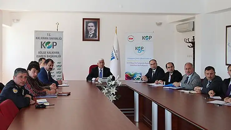 Karaman Valiliğinde yapılan toplantıya Vali Murat Koca, KOP Bölge Kalkınma İdaresi Başkan Vekili İhsan Bostancı, Karaman Belediye Başkan Yardımcısı Osman Ünver ve ilgili kurum amirleri katıldı.