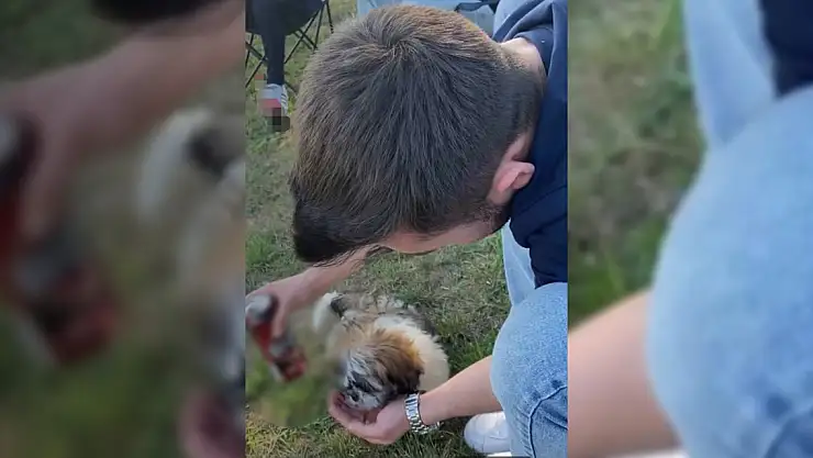 Köpeğe alkol içirdi, bir de o anları paylaştı!