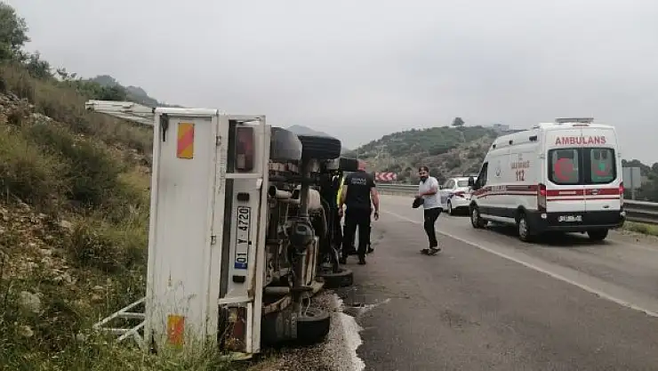 Köpeğe çarpmamak için manevra yapan kamyonet devrildi, sürücü yaralandı
