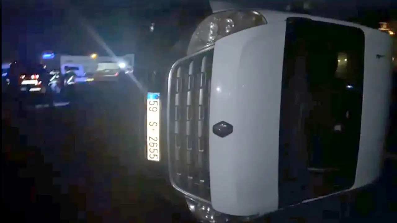 Köpeğe çarpmamak için sürücüsünün manevra yaptığı işçi servisi yan yattı: 9 yaralı