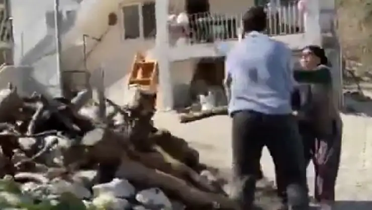 Delil olarak görüntü aldığını söyleyen Acil ile muhtar arasında tam bu sırada bir arbede yaşandı. Mahalle muhtarı hızını alamayıp kenardaki odunları eline alarak Acil'e saldırma girişiminde bulundu. Çevredekilerin araya girmesiyle kavga önlenirken, Eren Acil olay yerinden uzaklaştı.
