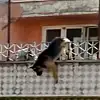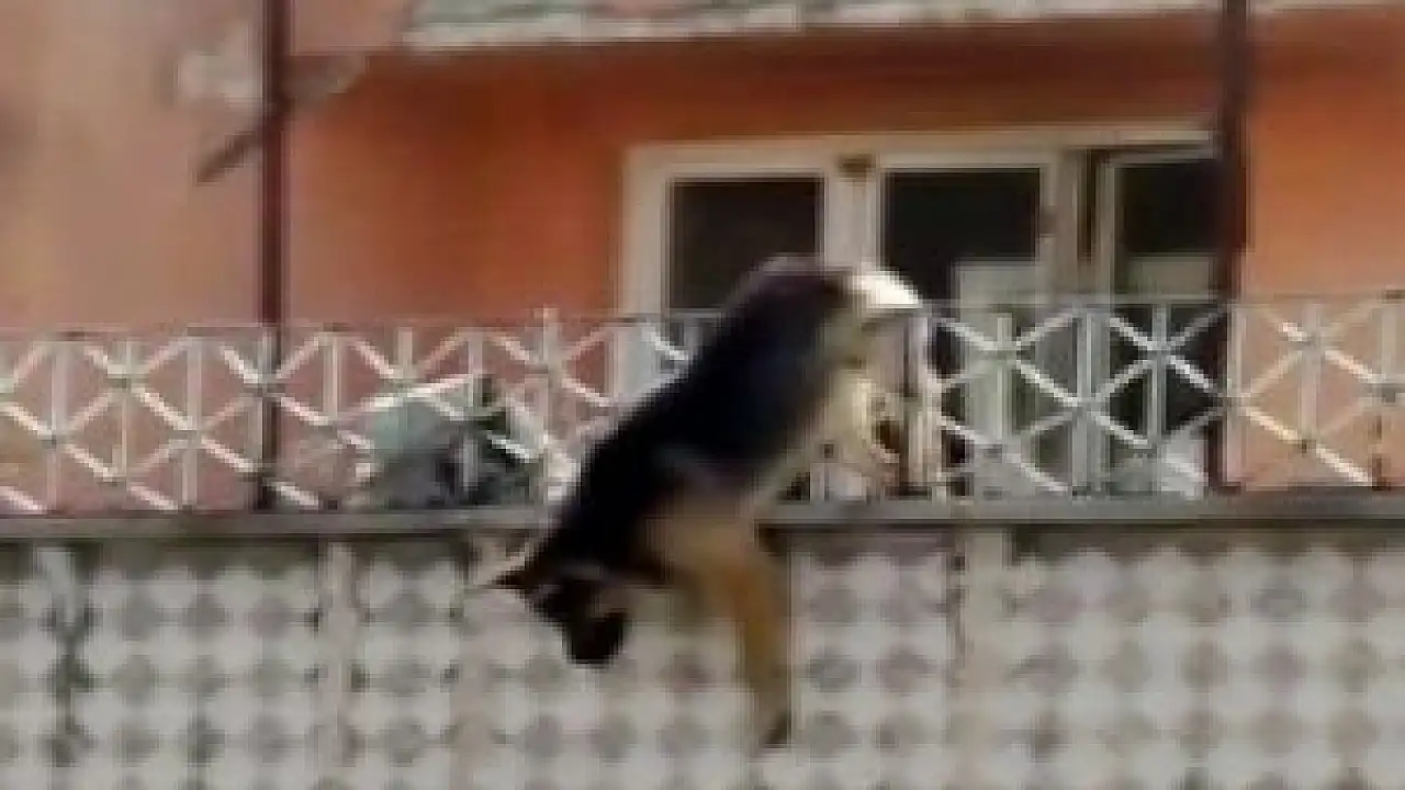 Balkon demirlerine zincirle bağlanan 'Garip' isimli K9 cinsi köpek, balkondan aşağı düşmesi sonrası asılı kalarak can verdi.