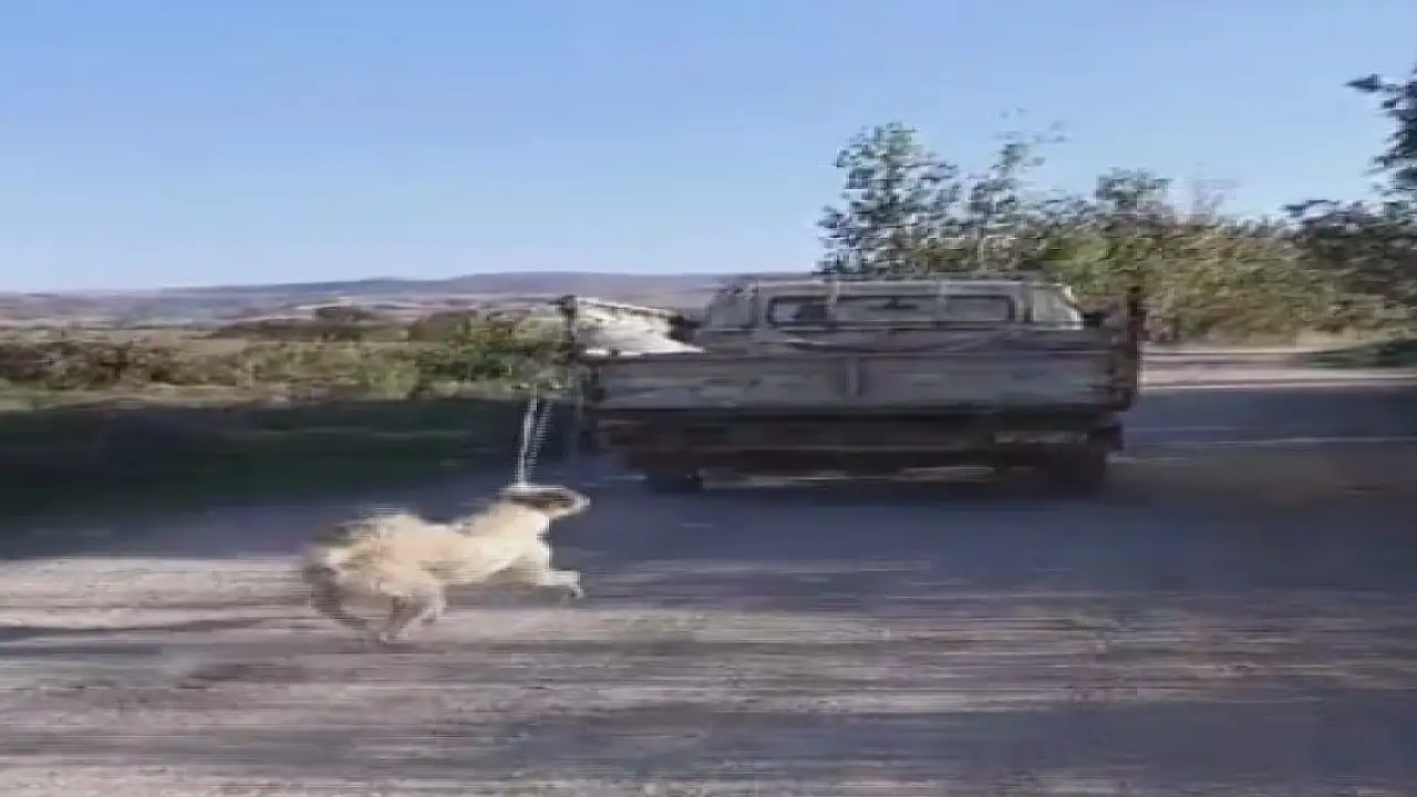 Suluova ilçesi Ayrancı köyünde kimliği henüz belirlenemeyen kişi, iple 05 ACK 836 plakalı kamyonetinin arkasına bağladığı köpeği, kilometrelerce sürükledi. Olayı gören motosiklet sürücüsü Ü.B., yaşananları cep telefonunun kamerasıyla kaydedip, durdurduğu kamyonetin sürücüne tepki gösterdi.