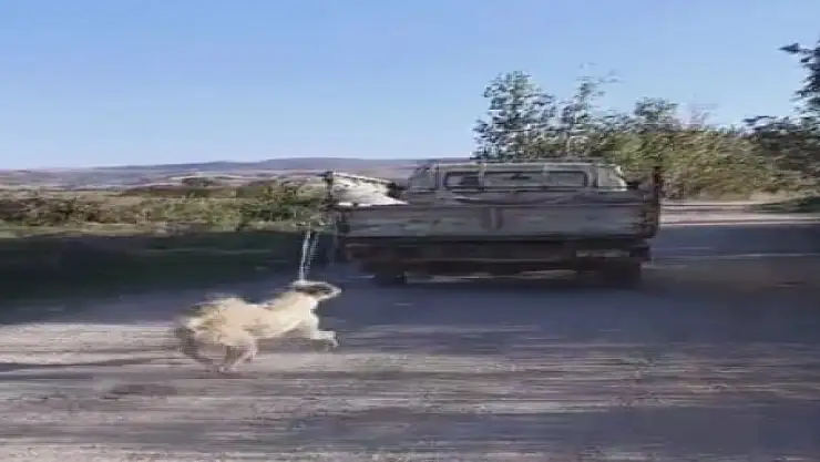 Köpeğini kamyonetin arkasına bağlayıp, sürükledi