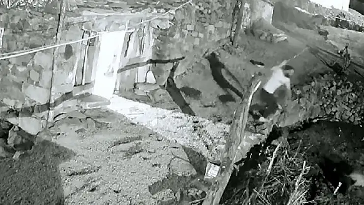 ARDAHAN'da köye inen kurt, evin önündeki köpeğe saldırdı. Güvenlik kamerası görüntülerinde köpeği, sahibinin kurdu sopayla kovalayarak kurtardığı anlar yer aldı.