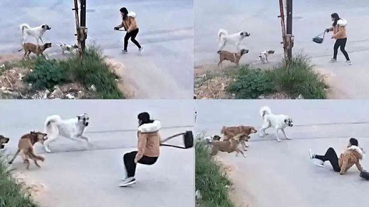 Olay, ilçeye bağlı Türbe Mahallesi Zafer Sokak üzerindeki sitelerin bulunduğu kavşakta meydana geldi. Alınan bilgiye göre, önceki gün sabah saat 07.00 sıralarında sokak üzerinden ilçe merkezine doğru yürüyen genç bir kıza sokak köpekleri saldırdı. Genç kız köpeklerden çantası sayesinde korundu. Çantasıyla hayvanların saldırmasını önlemeye çalışan genç kız dengesini kaybedip yere düşerken, apartmandan hayvanların sesini duyan bir kişi pet şişe atarak müdahale etmek istedi. Bu sırada araçla bölgeden geçen bir vatandaş korna çalarak hayvanları korkutup kızı kurtardı. O anlar ise bir sitenin güvenlik kamerasına yansıdı.