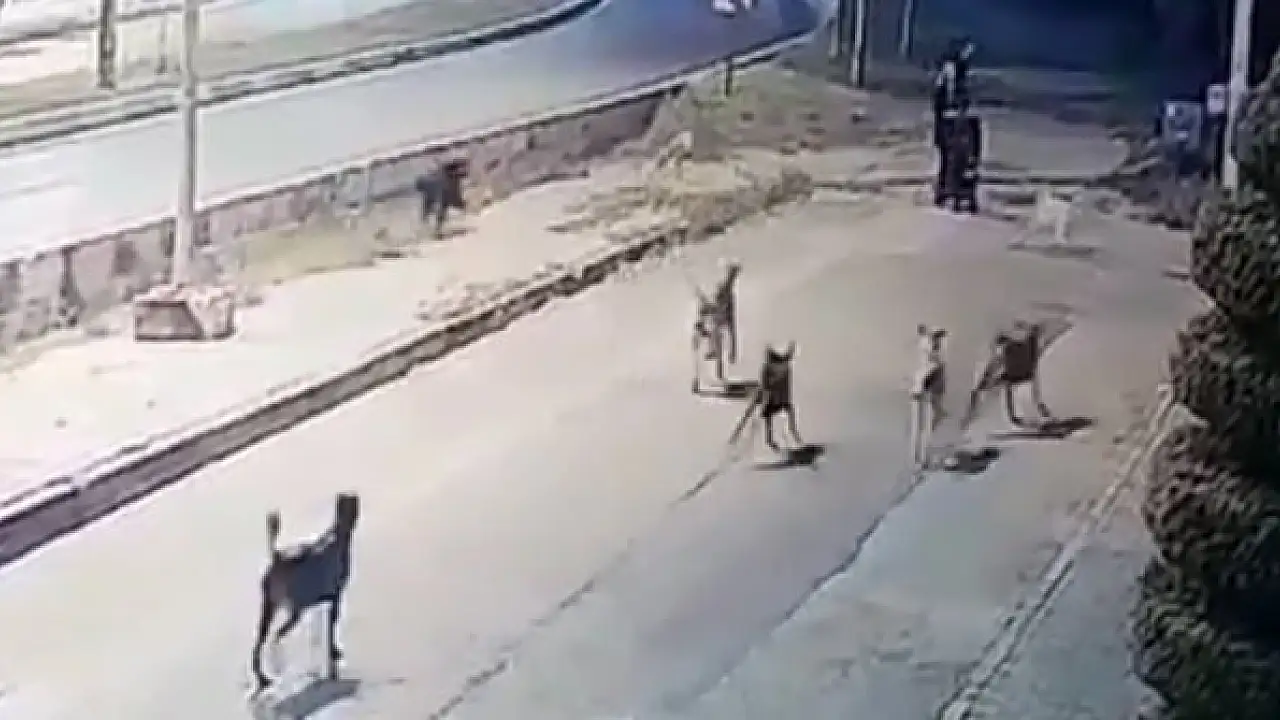 ANTALYA'da sokakta yürürken 10'dan fazla köpeğin saldırısına uğrayan Özgür E. (46), bacağından yaralandı. Aynı köpeklerin, Özgür E.'nin yanı sıra, başka vatandaşlara da saldırdığı anlar, güvenlik kameralarına yansıdı.