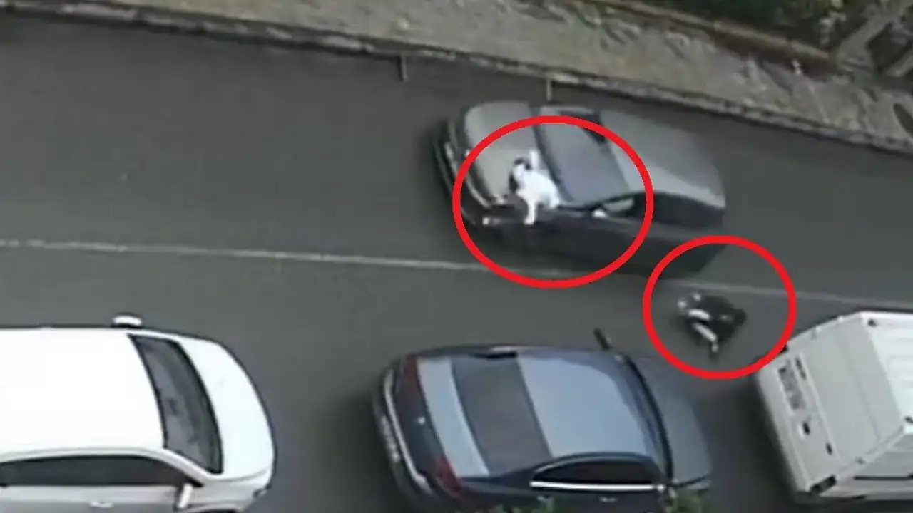 ORDU'nun Altınordu ilçesinde köpek havlamasından korkup kaçan iki çocuk, otomobilin çarpmasıyla yaralandı. O anlar ise güvenlik kamerasına yansıdı.