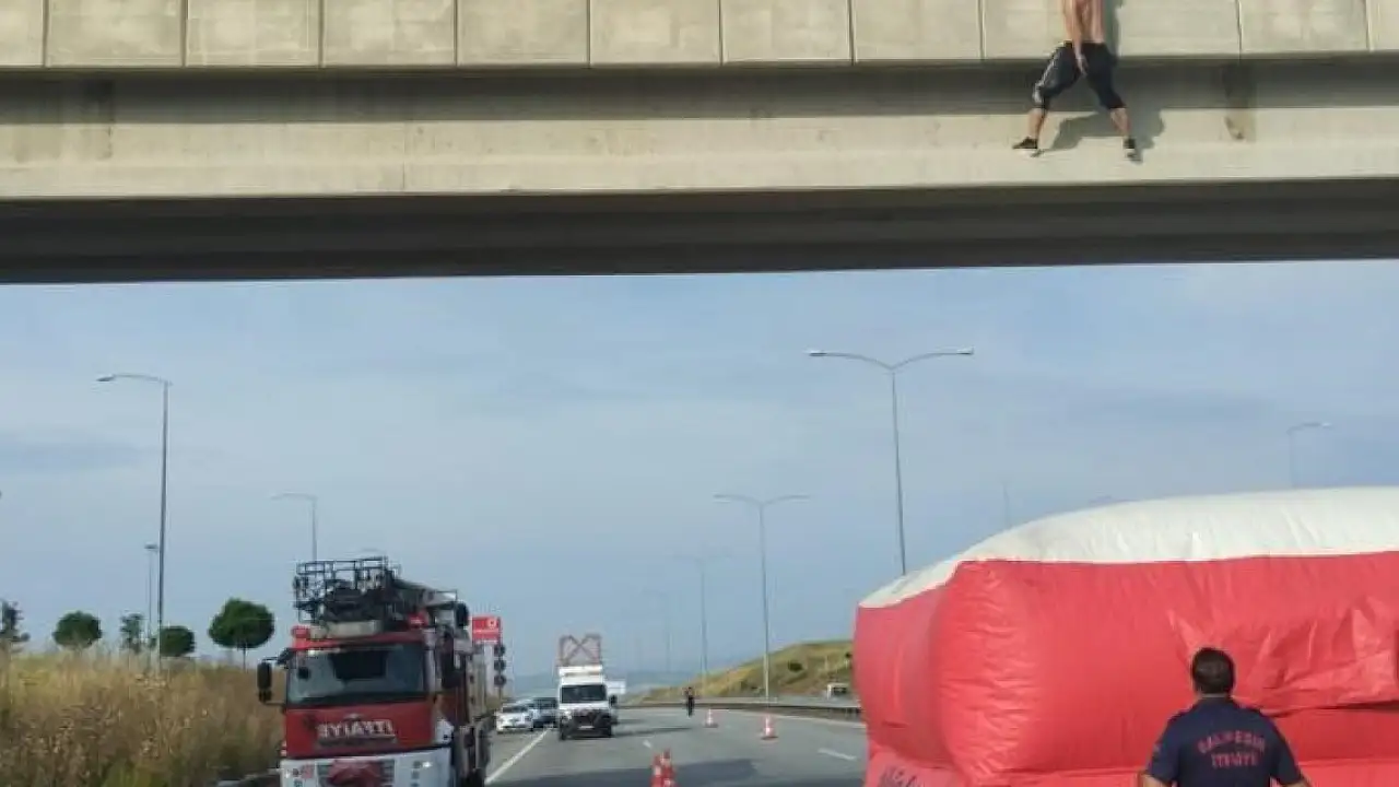 Olay, İstanbul-İzmir Otoyolu Bursa MustafaKemalPaşa Adaköy Konakoğlu Oksijen Tesisleri üst geçidinde meydana geldi. Edilin bilgiye göre, psikolojik sorunları olan vatandaş, köprünün üzerine çıkarak altından geçen araçların arasına atlamak istedi. Birinin köprüden sarktığını fark eden vatandaşlar, durumu güvenlik ekiplerine haber verdi. Olay yerine gelen jandarma ekipleri yolu trafiğe kapattı. İtfaiye ekipleri de şahsın atlama ihtimali olan yere şişme yatak açtı. Aşağı atlayan şahıs, açılan şişme yatak sayesinde kurtuldu. Kısa süreliğine trafiğe kapatılan yol açılırken, jandarma ekiplerinin olayla ilgili tahkikatı sürüyor.
