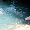 Köprüden atlayarak serinlemeye çalışıyorlar