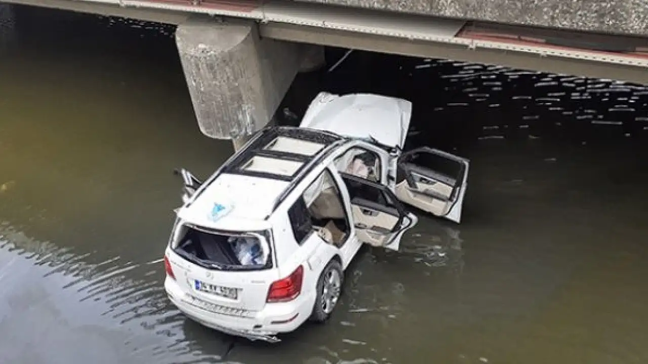 Mimarsinan Caddesi'nde Abdurrahman Hatipoğlu'nun kullandığı cip, sürücüsünün direksiyon hakimiyetini kaybetmesi nedeniyle Tuzla Deresi Köprüsü'nden düştü.