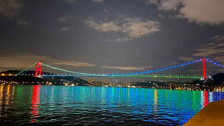 İstanbul'da köprüler Karabağ Zaferi'nin 2. yıl dönümünde Azerbaycan bayrağının renkleri olan kırmızı, mavi ve yeşile büründü.
