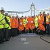 Cumhurbaşkanı Erdoğan, Başbakan Davutoğlu ve Bakan Yıldırım, daha sonra son tabliyenin vidalarını sıkıştırdı.