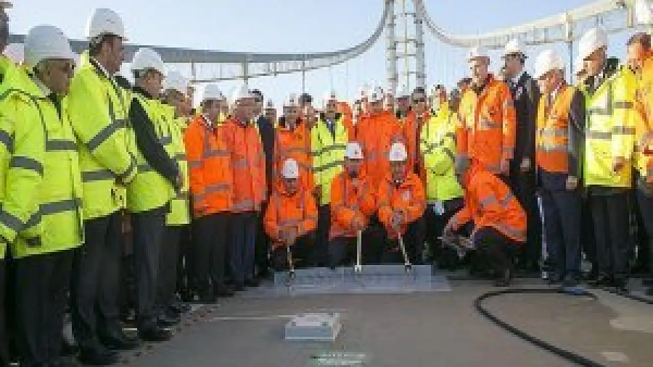 Burada konuşan Erdoğan, birazdan ismini açıklayacağı köprünün son tabliyesinin vidalarını Davutoğlu ve Yıldırım ile sıkacaklarını belirterek, tabliyenin kaynağının görevliler tarafından ayrıca yapılacağını söyledi.