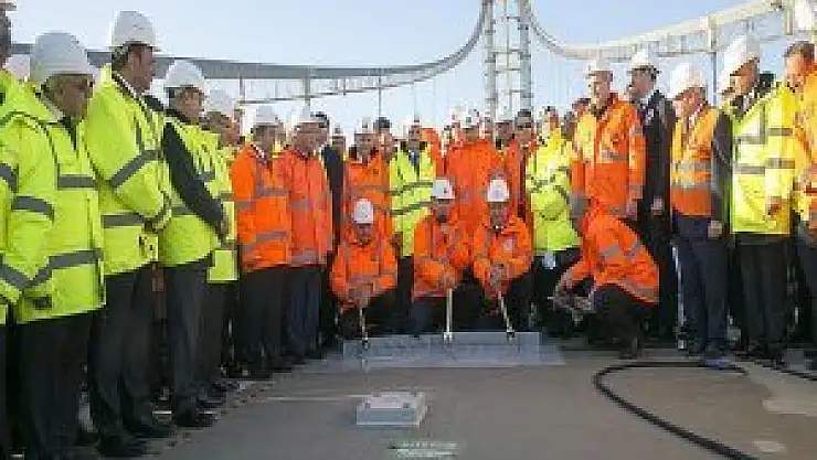 Cumhurbaşkanı Recep Tayyip Erdoğan, Başbakan Ahmet Davutoğlu ile Ulaştırma, Denizcilik ve Haberleşme Bakanı Binali Yıldırım, İzmit Körfez Geçişi Asma Köprüsü'nün son tabliyesini yerleştirdi.