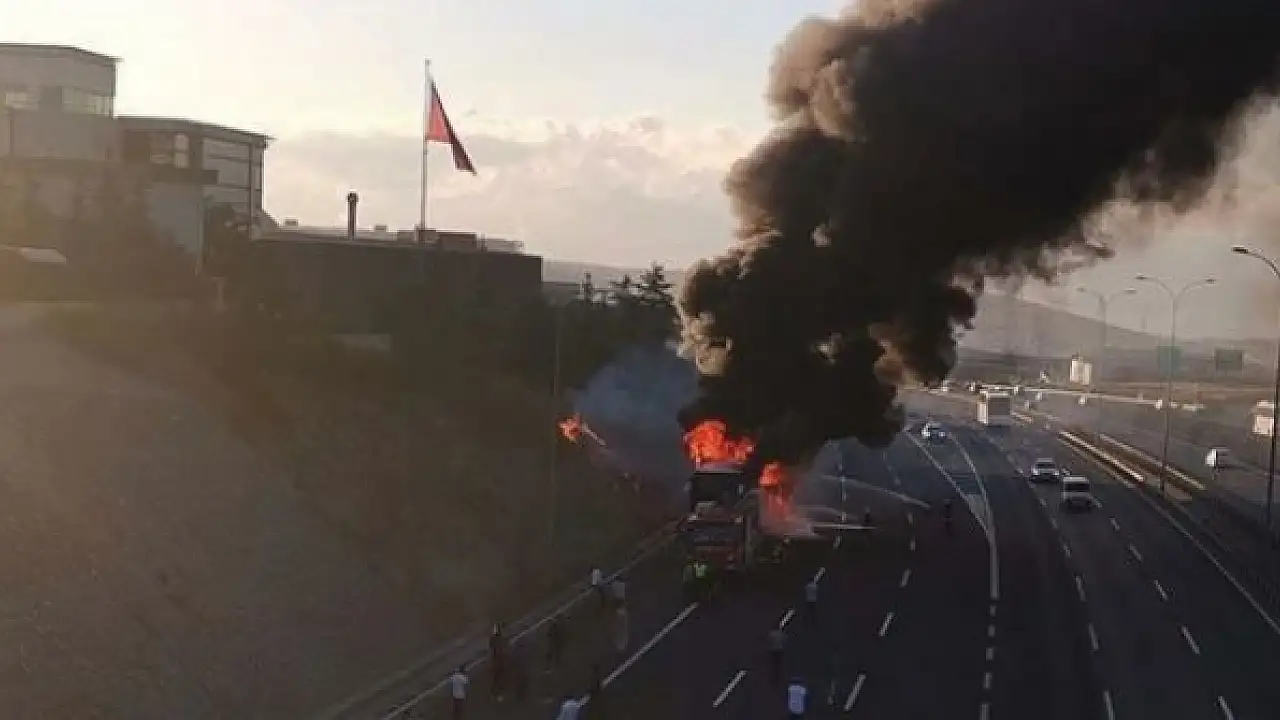 Alınan bilgiye göre, Kayseri'den İstanbul'a yolcu taşıyan Şemsettin Taştan idaresindeki 38 EM 737 plakalı otobüs, Anadolu Otoyolu Gebze gişeleri mevkisinde henüz bilinmeyen sebeple alev aldı.