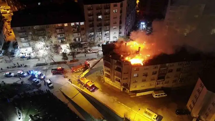 Elazığ'da 5 katlı bir binanın çatı katında yangın çıktı. İki binanın daha çatısına sıçrayan yangın kentin birçok noktasından görüldü.