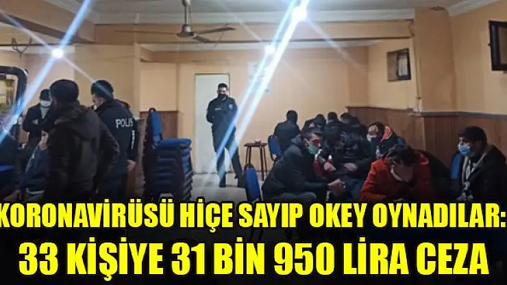 Iğdır'da yeni tip koronavirüs (COVID-19) tedbirlerine uymayarak bir binanın bodrum katında okey oynayan 33 kişiye 31 bin 950 lira ceza kesildi.
