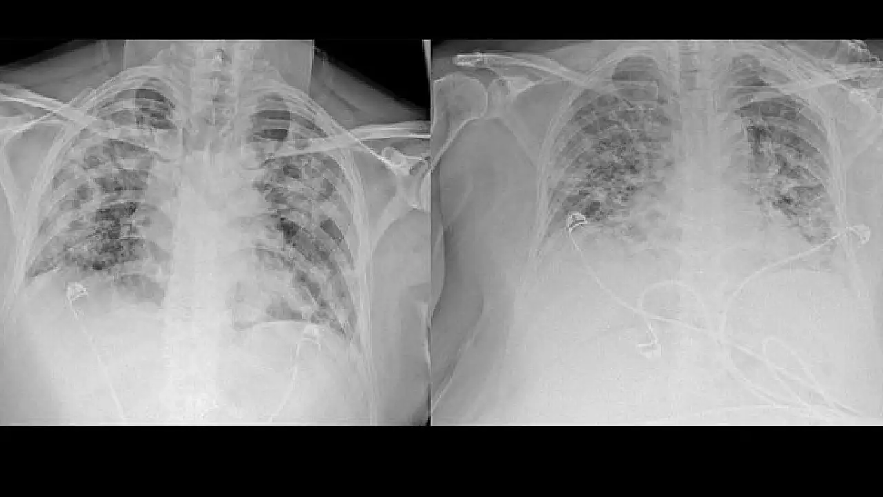 "İnsanların aradaki farkları anlamaları için her iki akciğer görüntülerine de yer verdim. Görüntülerdeki beyazlıklar akciğerdeki tutulumu gösteren görüntüler ne yazık ki. Bu hastalar yoğun bakım hastaları. Filmler birbirine az çok benzeyen şekilde. Altta yatan hastalığı olanlarda ise daha kötü seyrediyor."