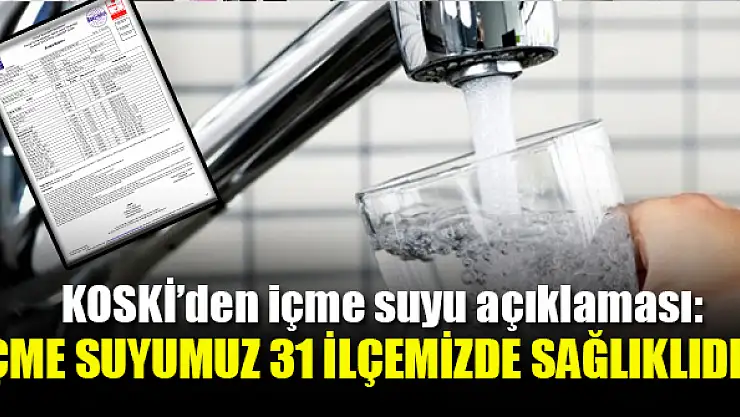 KOSKİ: İÇME SUYUMUZ 31 İLÇEMİZDE SAĞLIKLIDIR VE SÜREKLİ KONTROL ALTINDADIR