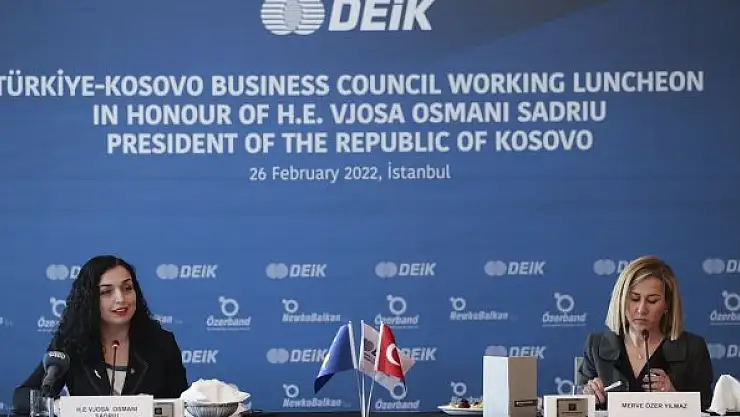 İki ülkeden iş insanlarının katılarak iş fırsatlarını konuştuğu Türkiye-Kosova İş Konseyi Çalışma Yemeği İstanbul'da Kosova Cumhurbaşkanı Vjosa Osmanı Sadriu'nin katılımıyla gerçekleştirildi.