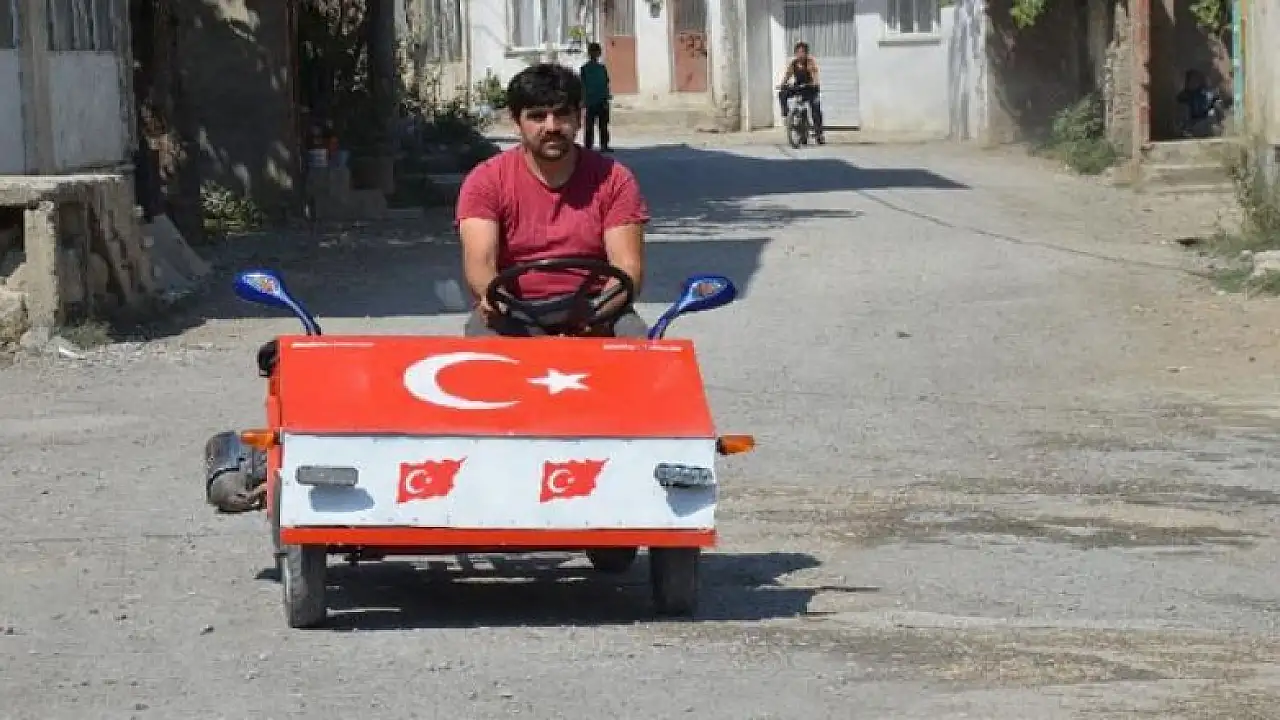 Köy çocukları için al bayraklı yerli otomobil yaptı