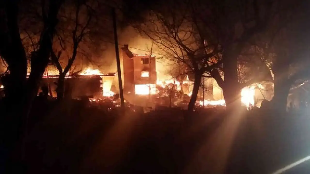 Olay gece saat 02.00 sıralarında ilçeye bağlı Taşköprü köyünde meydana geldi. Alınan bilgiye göre, sebebi henüz bilinmeyen bir şekilde Mustafa Kaya'ya ait ahşap evde başlayan yangın, kısa sürede büyüyerek bitişiğinde bulunan Hüseyin Kaya'ya ait boş eve sıçradı. Olay yerine çok sayıda itfaiye ekibi sevk edilirken vatandaşların yardımıyla yangın söndürüldü. Soğutma çalışmalarının devam ettiği yangında evde bulunan Mehmet Kaya yangında hayatını kaybederken, eşi Esma Kaya için ekipler arama çalışmalarını sürdürüyor.