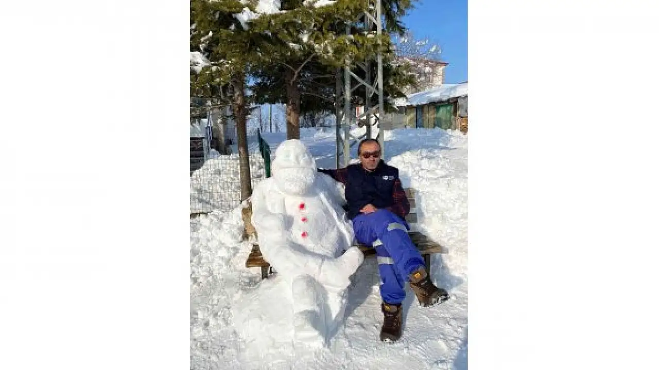 Elazığ'ın Karakoçan ilçesinde bir muhtar yağan karı sanata dönüştürdü, 'kardan dede' yaptı.