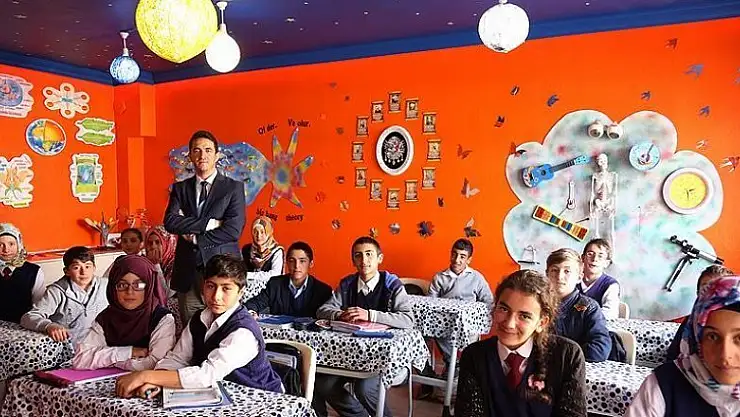 Bayburt'un Demirözü ilçesi Beşpınar köyündeki Şehit Gürcan Yavuz İmam Hatip Ortaokulu öğretmeni Emre Özel, öğrencilerine, tasarımını ve düzenlemesini kendisinin yaptığı, "galaksi tavan" sisteminin de yer aldığı sıra dışı sınıfta eğitim veriyor.