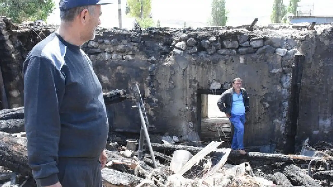 SİVAS'ın Hafik ilçesinde 2 ev, 3 ahır, 2 samanlık ve 1 garajın kullanılamaz hale geldiği yangının, elektrik tesisatından çıktığı tahmin ediliyor. Evi yanan Osman Karakaş (61), "Her şeyim yandı, kül oldu çıkaramadım. Yetkililerden yardım bekliyorum. İnşallah yardım ederler" dedi.