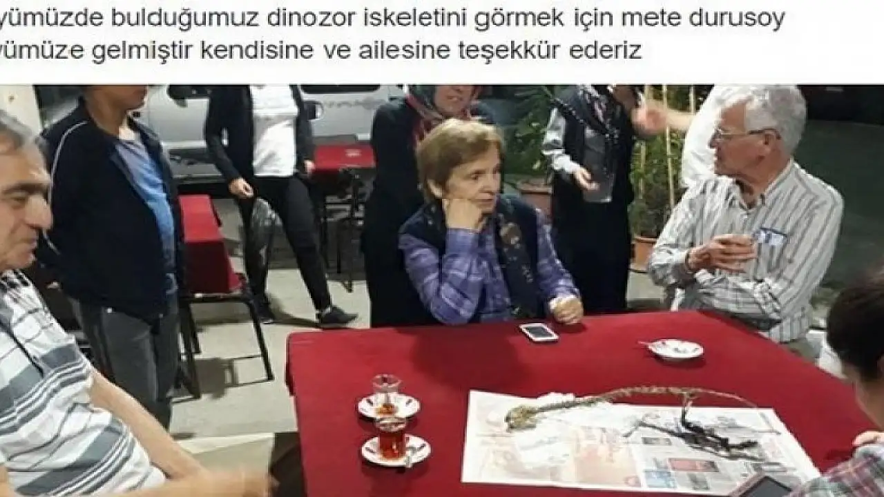 Köy kahvesinde masanın üzerine konulan iskeleti inceleyerek fotoğrafını çekerek sosyal medyada yaydı.