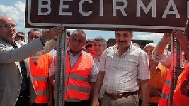 Daha sonra Şimşek, görevlilerle köyün tabelasını taktı.