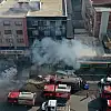 Alevlerin yükseldiği mağazadan patlama sesleri duyulurken, polis ekipleri çevrede geniş güvenlik önlemi aldı.